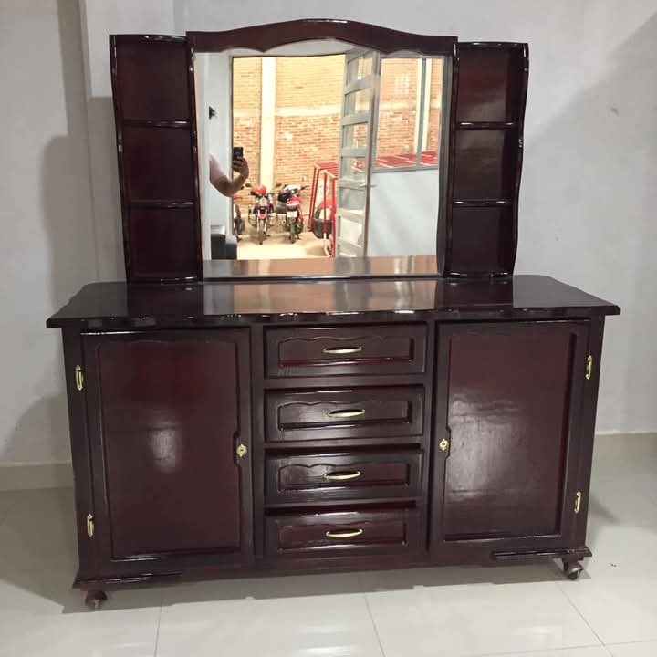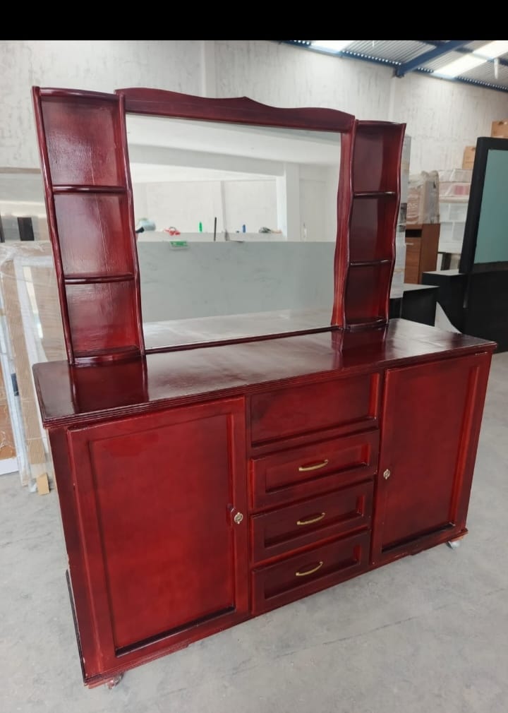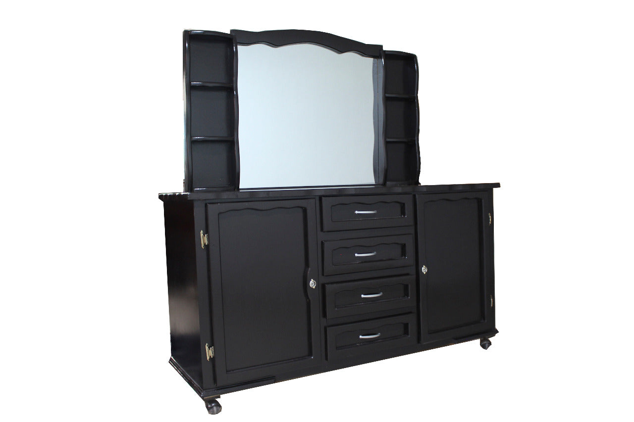 Elegante tocador fabricado en pino natural con acabado fino. Incluye espejo amplio y espacio para maquillaje y accesorios. Ideal para recámaras modernas y clásicas.