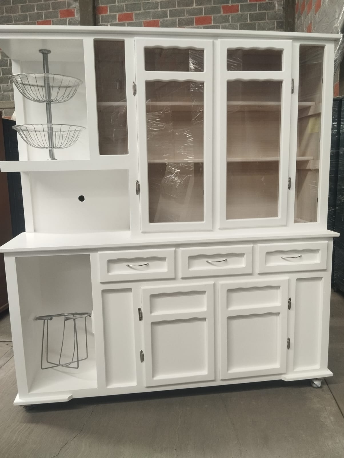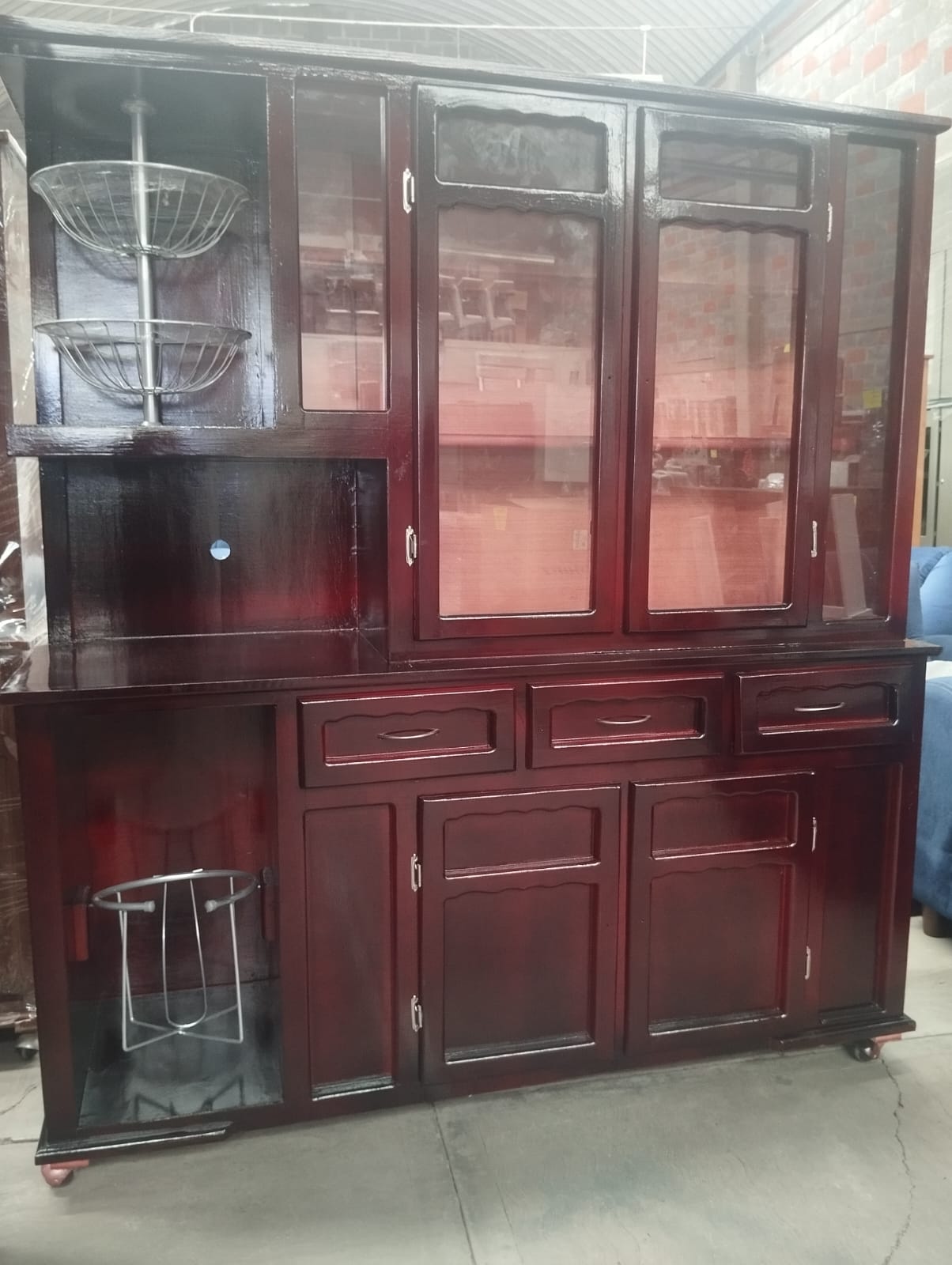 Perfecta para cocinas o comedores, con espacio para frutas, despensa y exhibición. Tamaño grande y acabado elegante.