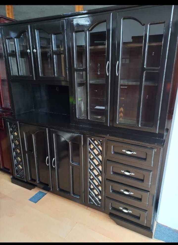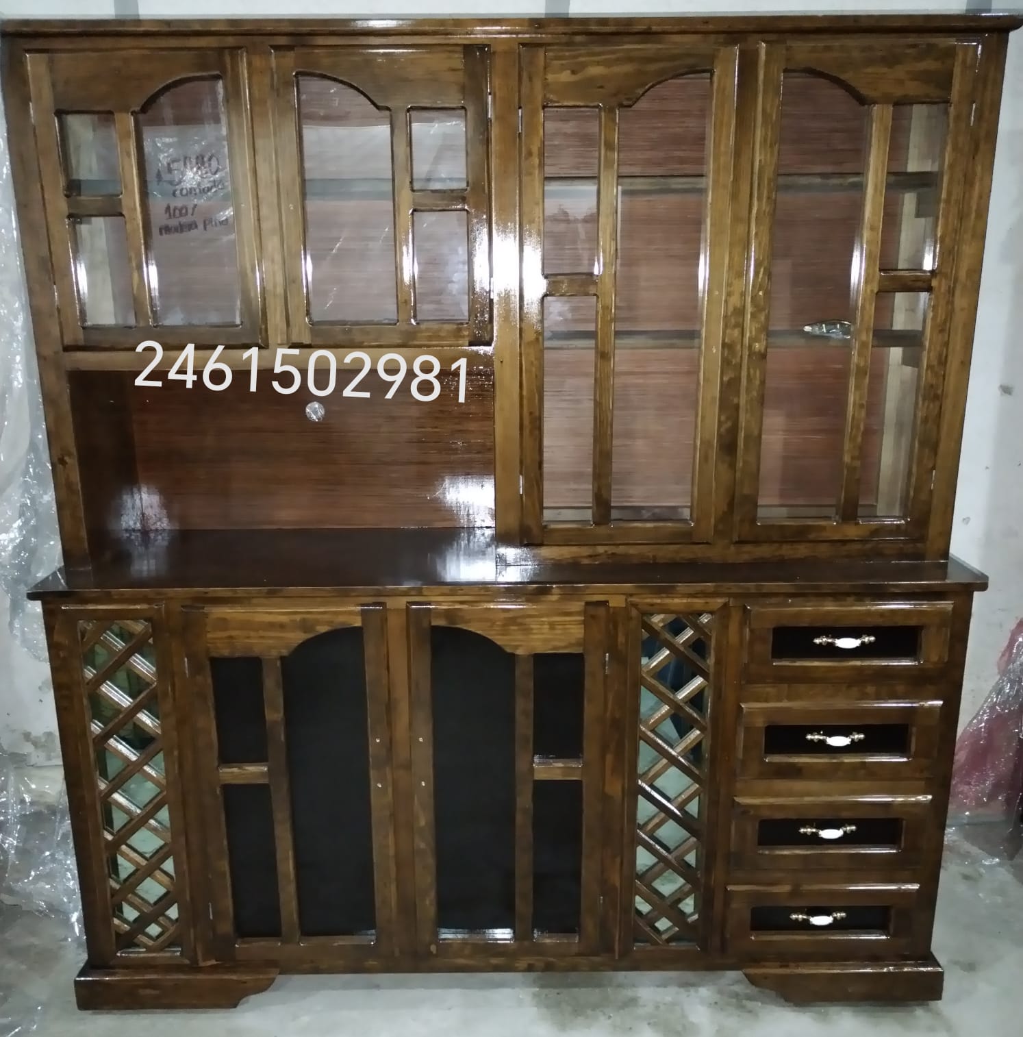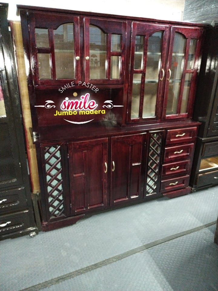Fabricada 100% en pino natural, esta vitrina jumbo ofrece gran resistencia y elegancia con sus 1.80 × 1.75 m. Perfecta para exhibir cristalería, vajilla o decoración. Disponible en vino, nogal y chocolate.